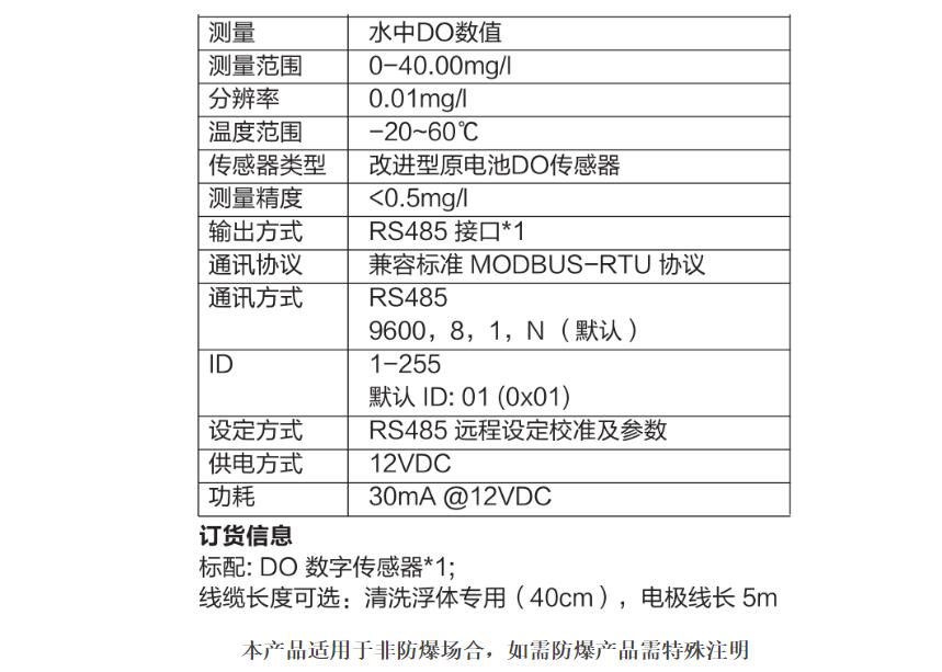 我司針對養殖行業設計的DO數字傳感器,帶RS485數字接口,可用于測量量程范圍內水溶液體系中DO值的變化情況其帶有標準RS485 Modbus RTU協議接口功能,可以與上位機進行遠程通訊。廣泛應用于水產養殖,水質檢測,信息化數據采集,物聯網水質檢測等場合中的溶氧量測量。