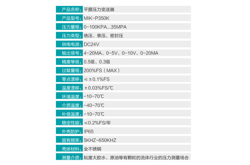 米科MIK-P350平膜型壓力變送器